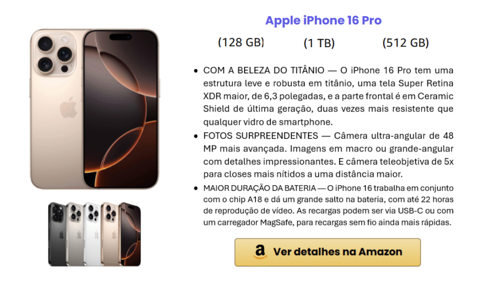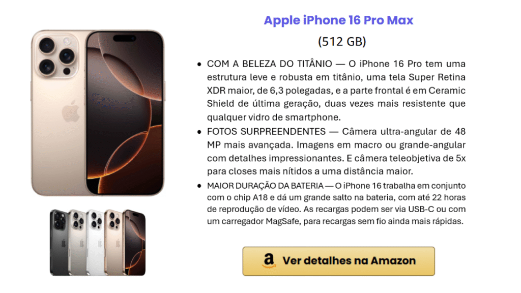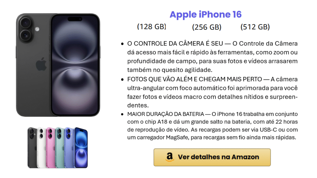 Ao longo deste review do iPhone 16, você vai entender como os novos botões, o chip A18, a câmera de 48 MP e os recursos de inteligência artificial se conectam para entregar um smartphone moderno, eficiente e preparado para os próximos anos.